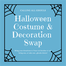 Trace's annual costume and decoration swap is back! Bring some or take some -- Ghoul's choice. Anything left will be donated to families in need.