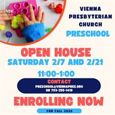 Join us at Vienna Presbyterian Church Preschool for our upcoming Open House and discover a warm, engaging learning environment for your child!